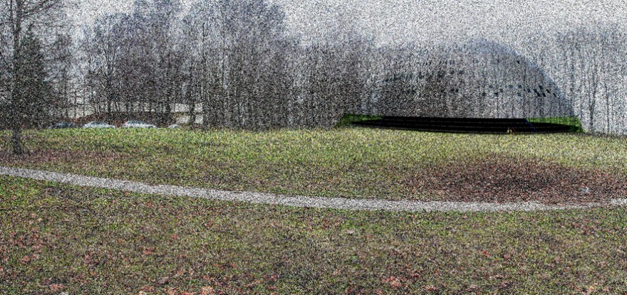 The proposal is a landscape-building solution concentrates a large portion of the built structure underground. This solution allows for free and public usage of big portion of the building lot (70%) which is covered by grass and vegetation. The roof of the underground part of the building creates two different outdoor amphitheatres: east and south. The east one is serving as outside foyer while the south one is a multifunctional stage and auditorium that during the winter time can be turned into skating rink. Both places can be used for outdoor concerts and other cultural gatherings.